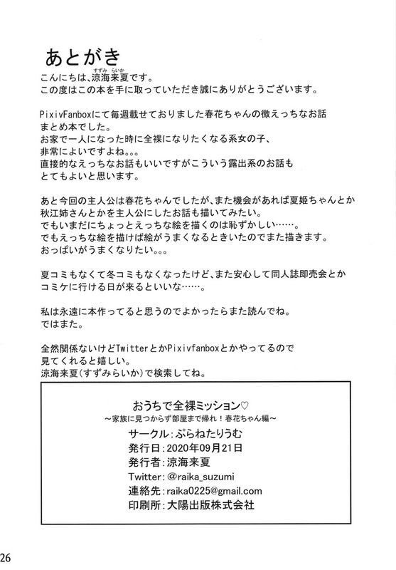 ぷらねたりうむ_凉海来夏在家中_全裸任务_在家人没注意到情况下回到房间_春花酱编